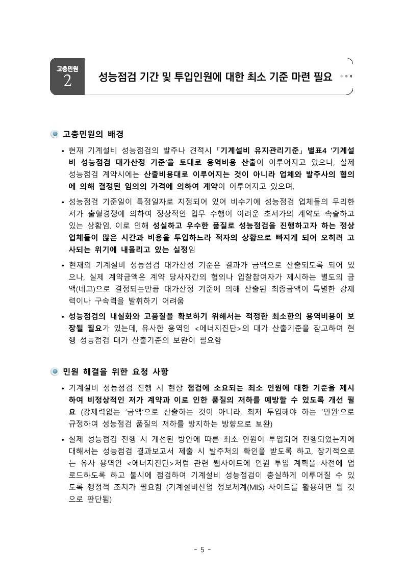 ② 기계설비 성능점검 대가산정 기준 마련 요청